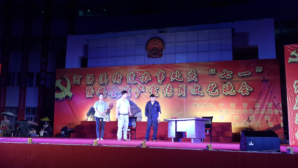 二零一四年六月二十七日晚上七點(diǎn),寧國市河瀝溪經(jīng)濟(jì)技術(shù)開發(fā)區(qū)辦事處大院內(nèi)燈火輝煌、人頭攢動,歡聲笑語此起彼伏。踐行黨的群眾路線暨推動河瀝安全發(fā)展環(huán)境文藝演出及頒獎晚會在此成功舉行,吸引了眾多參演單位員工及附近群眾踴躍前來觀看。